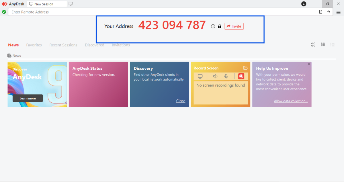 Open AnyDesk on both devices. Each one will show a unique 9-digit AnyDesk ID on the main screen. This ID is how devices find each other.